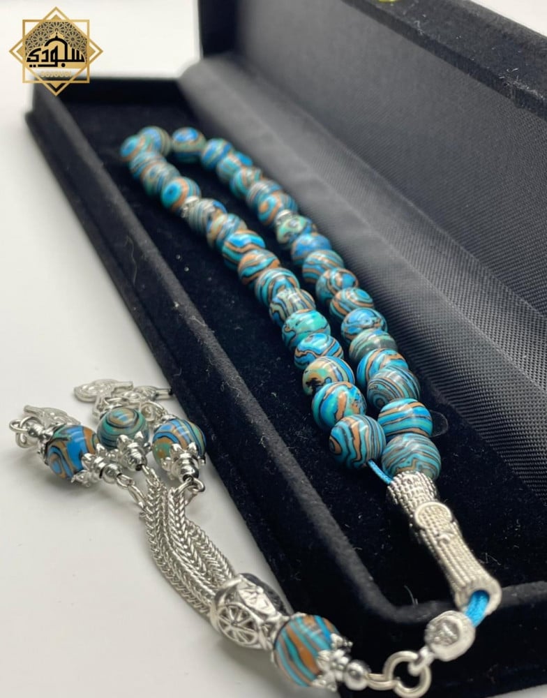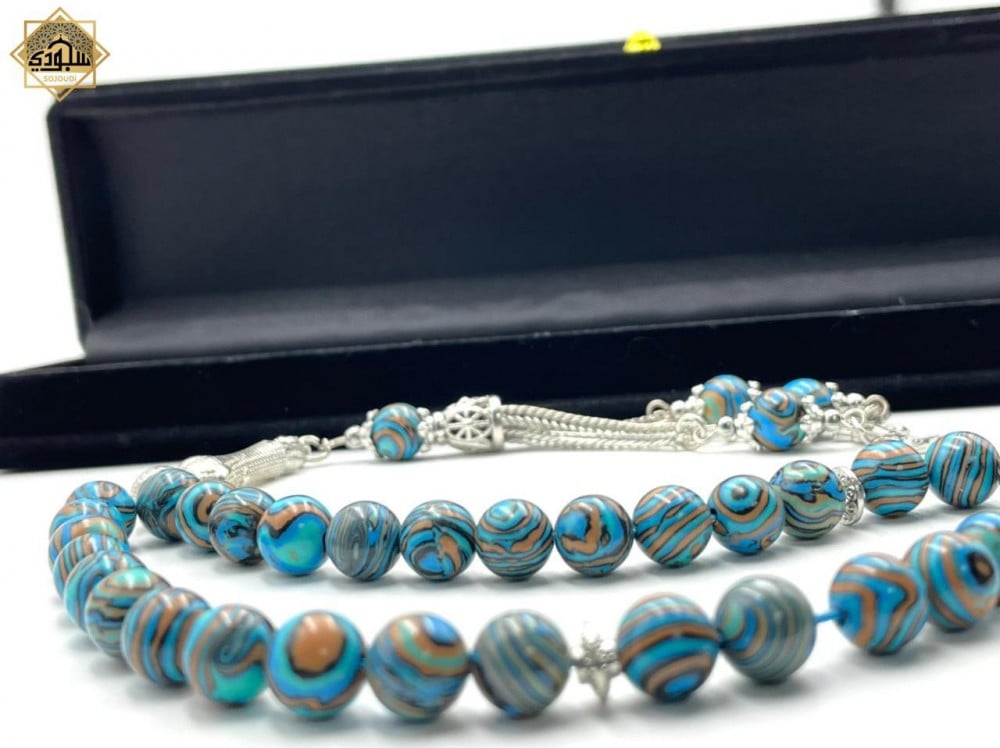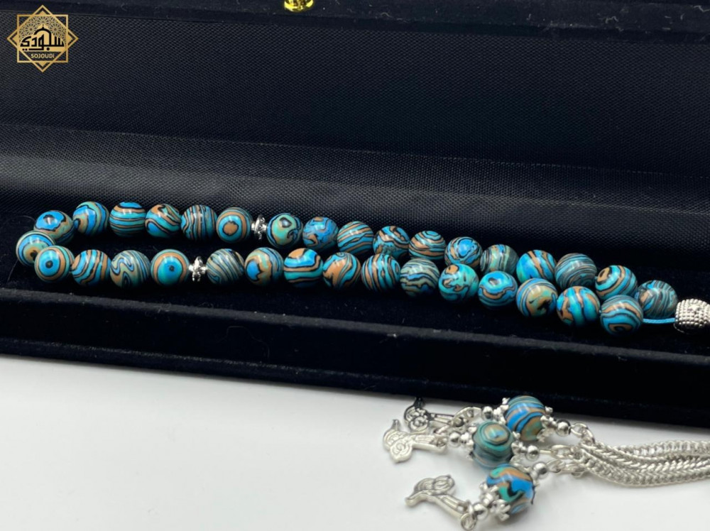 أجمل هدية تهديها لمن تحب: سبحة ملمسها ناعم وجميل، خفيفة الوزن يجعلها تحفة فنية بين يديك مصنوعة من ( حجر الملاكيت )