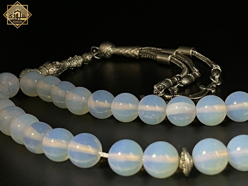 أجمل هدية لمن تحب: سبحة ملمسها ناعم وجميل يجعلها تحفة فنية بين يديك ​مصنوعة من حجر القمر الذي يتميز بلونة الأبيض الشبية بالقمر