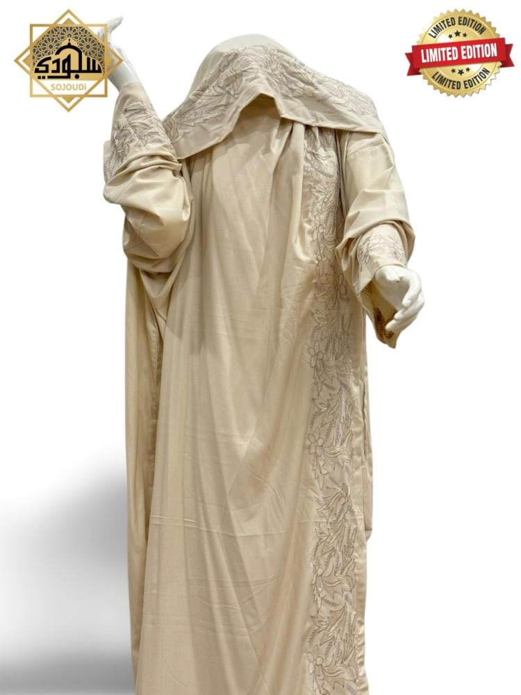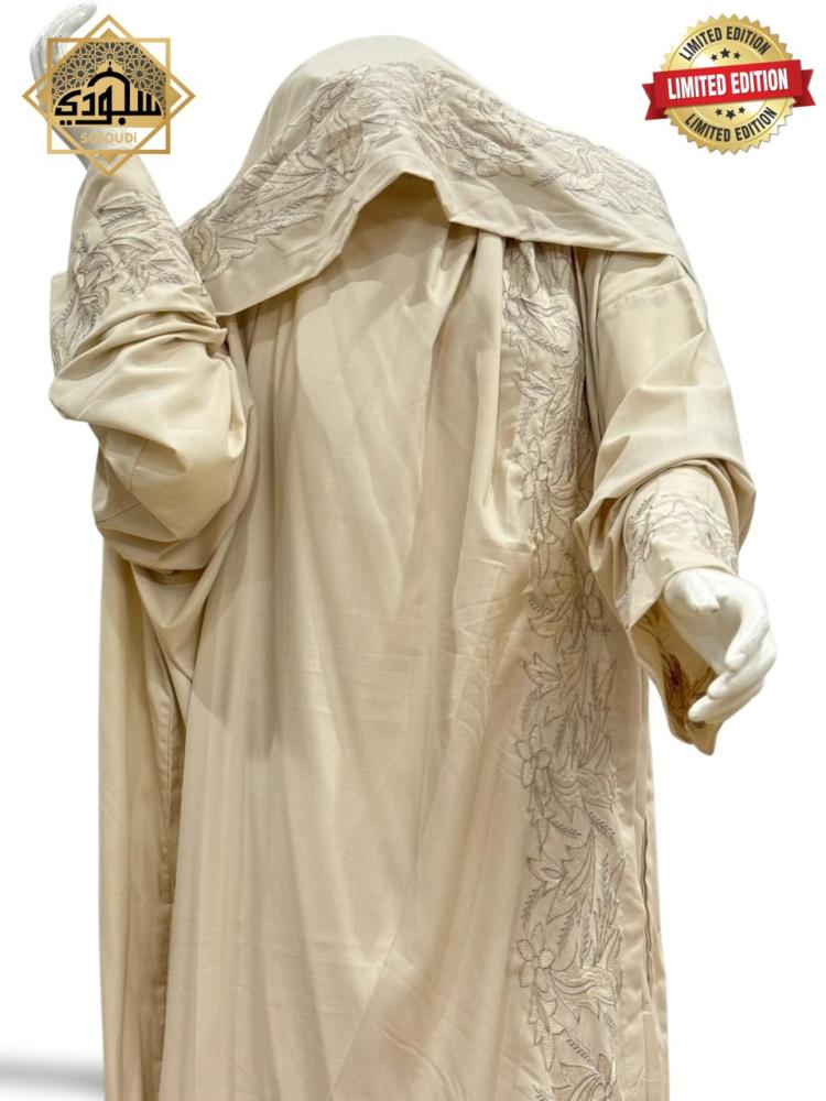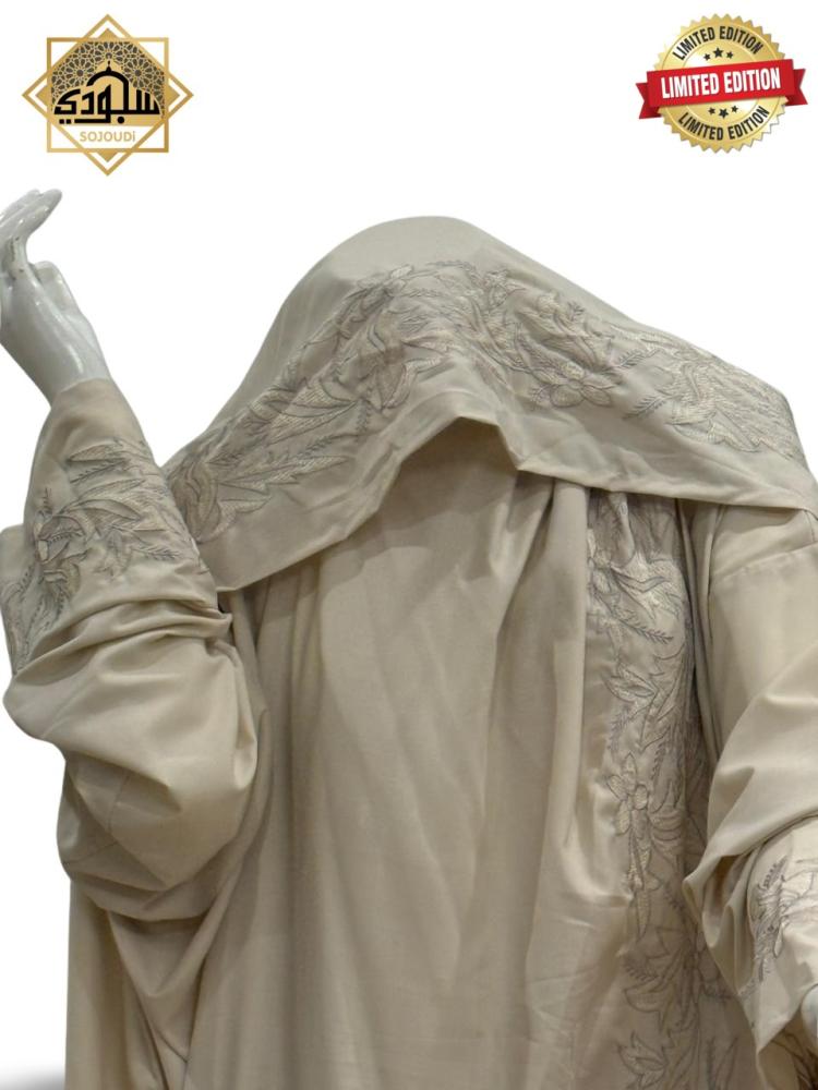 مصنوع من خامة ناعمة الملمس وباردة تمنحك الراحة والانتعاش أثناء الصلاة، مع طرحة متصلة لتوفير تغطية مثالية وسهولة في الارتداء.