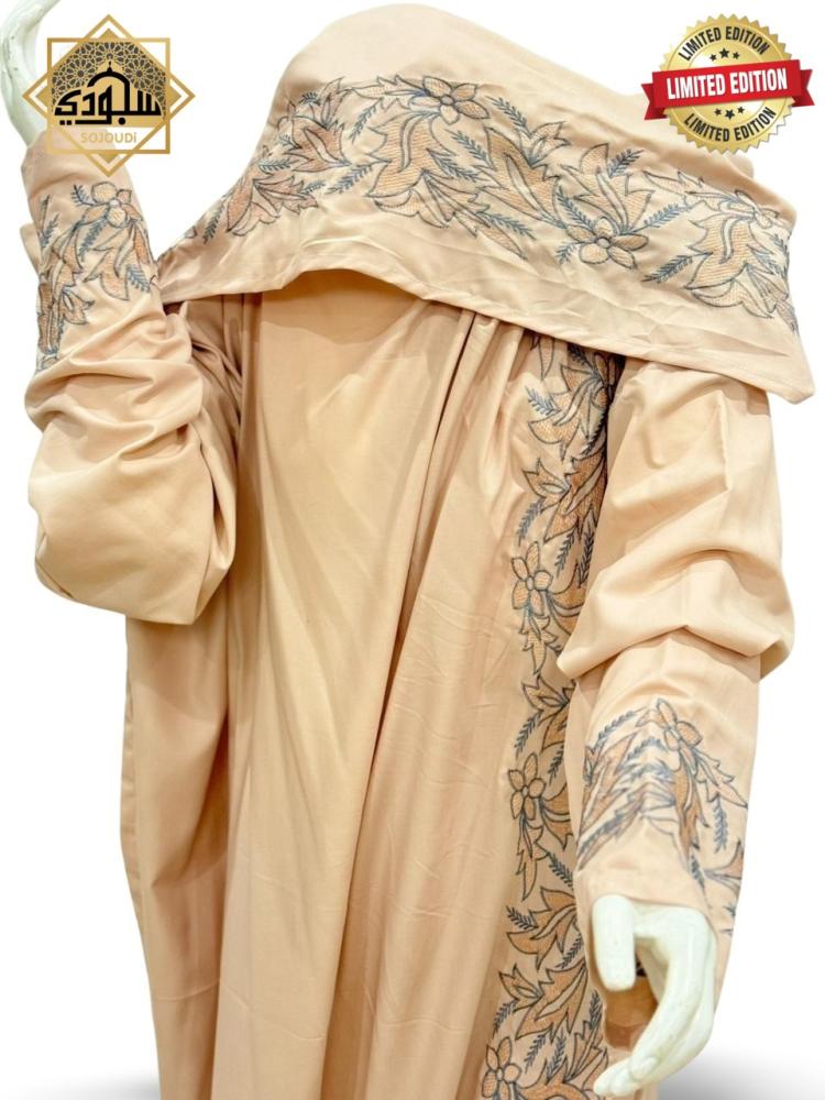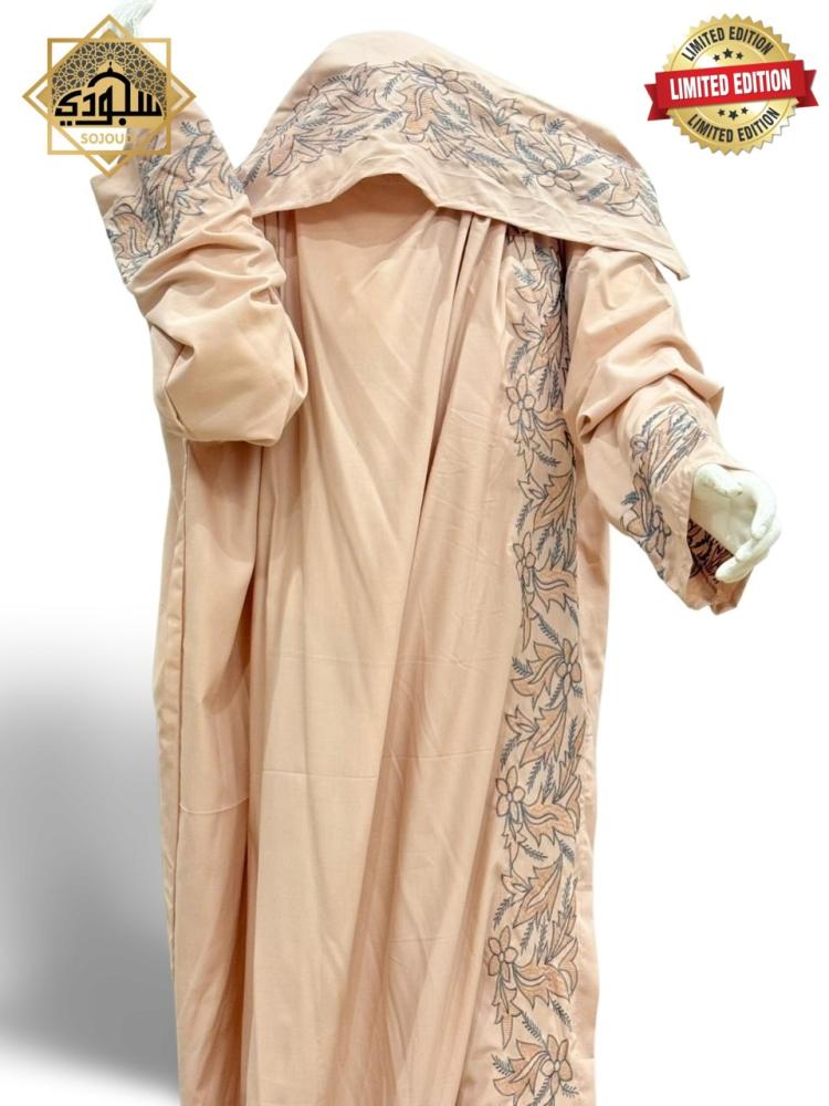 استمتعي بطقم صلاة متكامل يجمع بين الأناقة والراحة هادئ. يتكون الطقم من شرشف صلاة ناعم الملمس وطرحة متصلة بتطريز فاخر، يمنحك تغطية كاملة وسهولة في الارتداء.