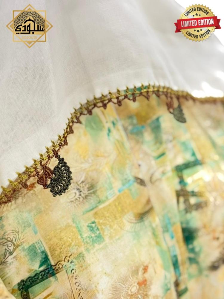 شرشف صلاة سحاب فاخر مشغول بكروشيه بخامة قطن كويتي ناعم وبارد