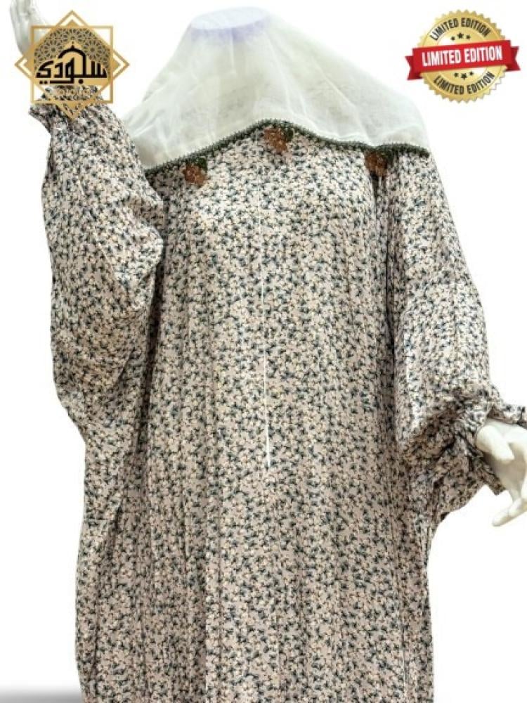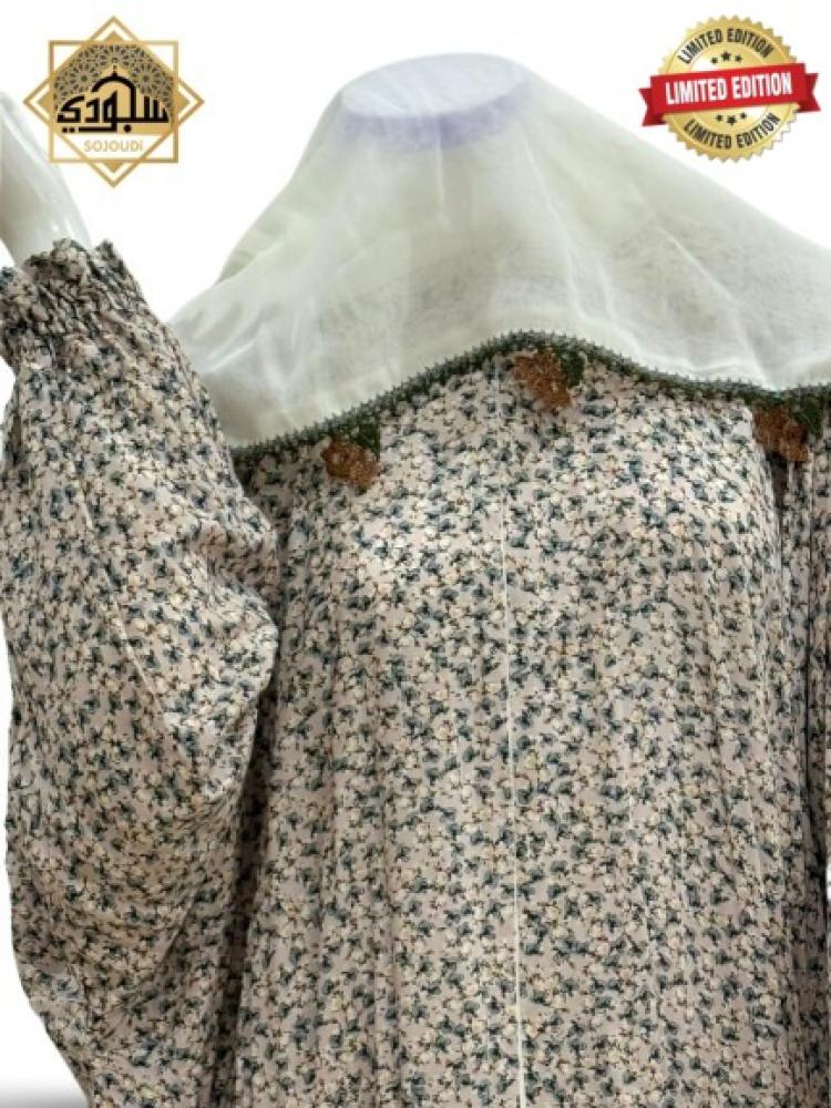 • الطرحة متصلة بالشرشف لمظهر متناسق ومزينه بكوروشيه يدوي فاخر جميل.