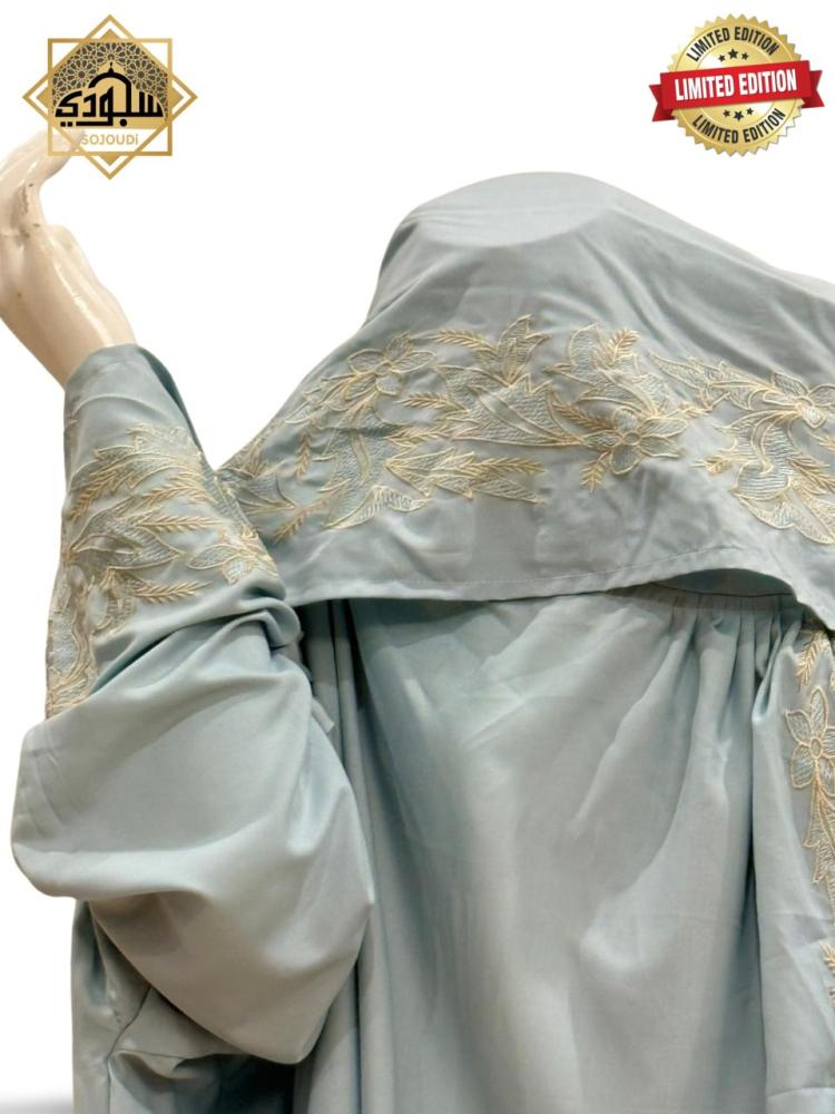 أضيفي لمسة راقية إلى لحظاتك الروحانية مع هذا الطقم الرمادي المميز، المصمم ليمنحك توازنًا مثاليًا بين الراحة والجمال. يتميز بقماش ناعم وبارد، مع طرحة متصلة تنسدل بأناقة لتضمن تغطية مثالية وسهولة في الارتداء.
